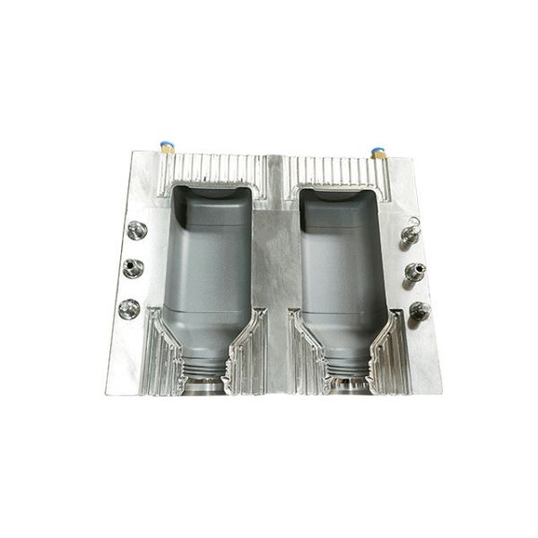 This is 2cavity 500ml pesticide PE bottle mould made by Alum material, surface in sandblast. The mould design in full circle round cooling line around the bottle shape aim to touch good cooling during producing.